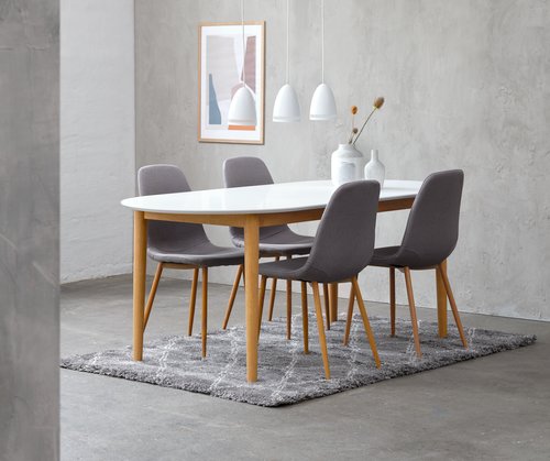 Obiteljima s djecom praktični blagovaonski stol od melamina ili umjetnog furnira često je prioritet, jer mora prlagođen raznim aktivnostima i druženjima. Sa stolicama i stolovima u raznim veličinama i bojama, upotpunit ćete svoju blagov Kvalitetne i moderne trpezarijske stolice. Odaberite veliki ili mali blagovaonski stol tako da, bez obzira na to tražite li blagovaonski set za cijelu obitelj ili manji set za kuhinju, u jysku ćete sigurno pronaći nekoliko modernih i lijepih opcija.. Blagovaonski stol komad je namještaja za mnoge svrhe, ne samo za jelo.
